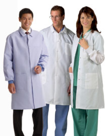 - Ladies’ Resistat Lab Coats are made of 99% polyester/1% carbon fiber fluid resistant, barrier fabric with inherent static control properties.