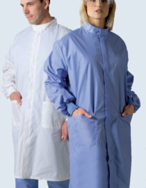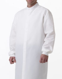 This Medline A/S barrier lab coat has inherent static control properties with a collar that can be worn open or up and has two lower patch pockets.